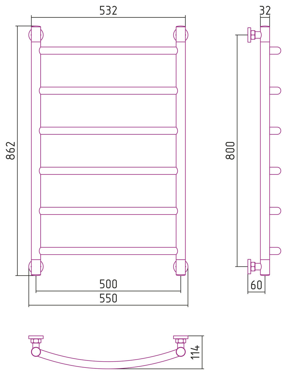 Внешние габариты (высота х ширина х глубина) (мм) : 862х550x114